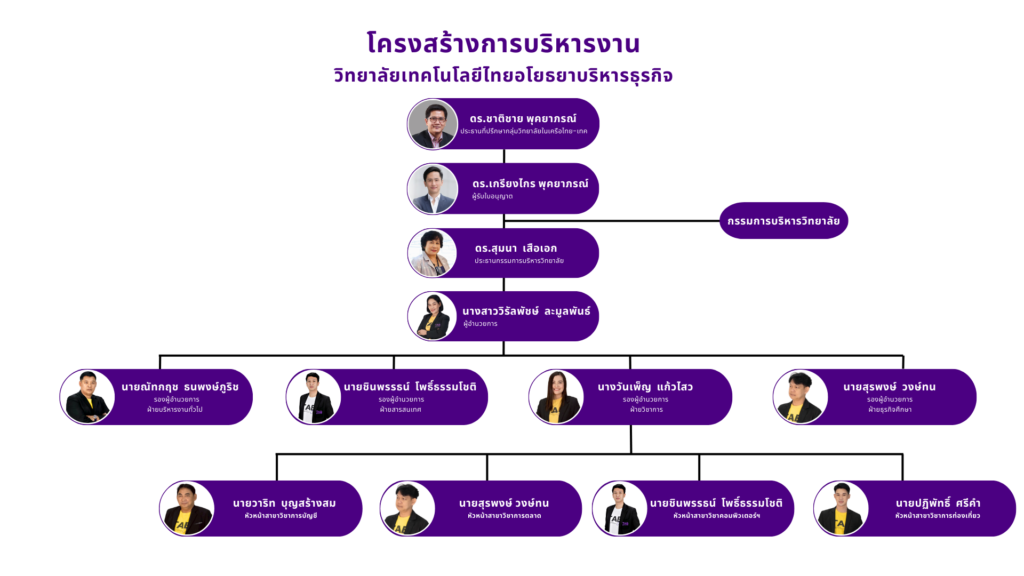 โครงสร้างการบริหารงานของวิทยาลัยเทคโนโลยีไทยอโยธยาบริหารธุรกิจ